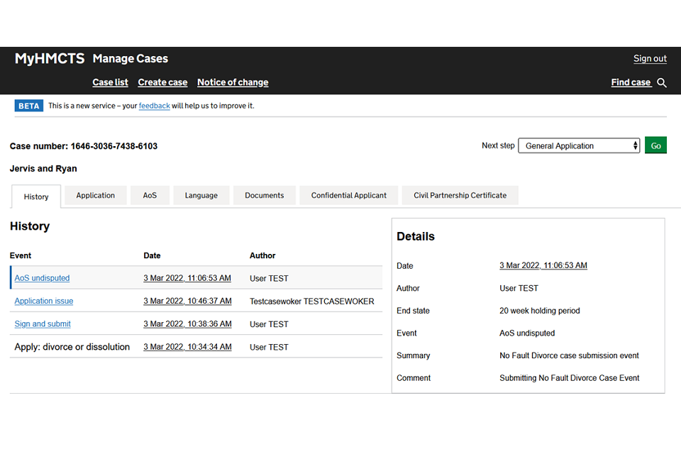 - access your divorce application through https://manage-case.platform.hmcts.net