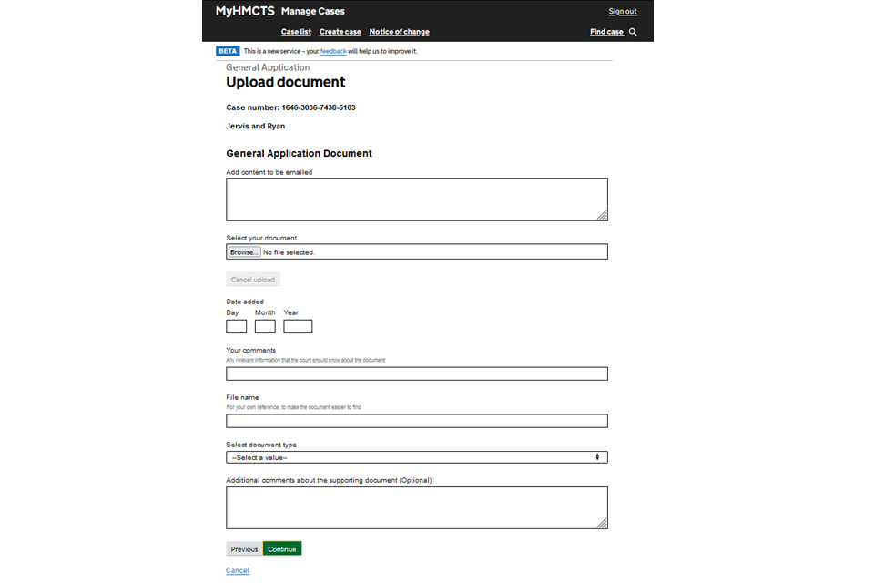 If you are having trouble accessing MyHMCTS, make sure you are using the correct link. To manage a case, you must use https://manage-case.platform.hmcts.net.