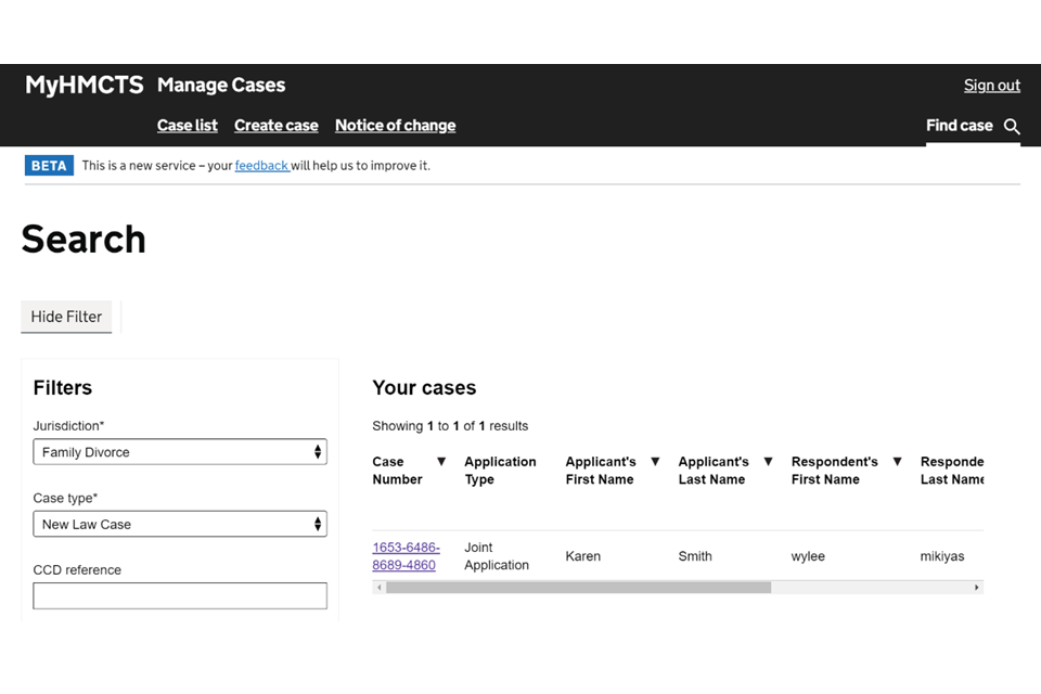 If you are having trouble accessing MyHMCTS, make sure you are using the correct link. To manage a case, you must use https://manage-case.platform.hmcts.net.