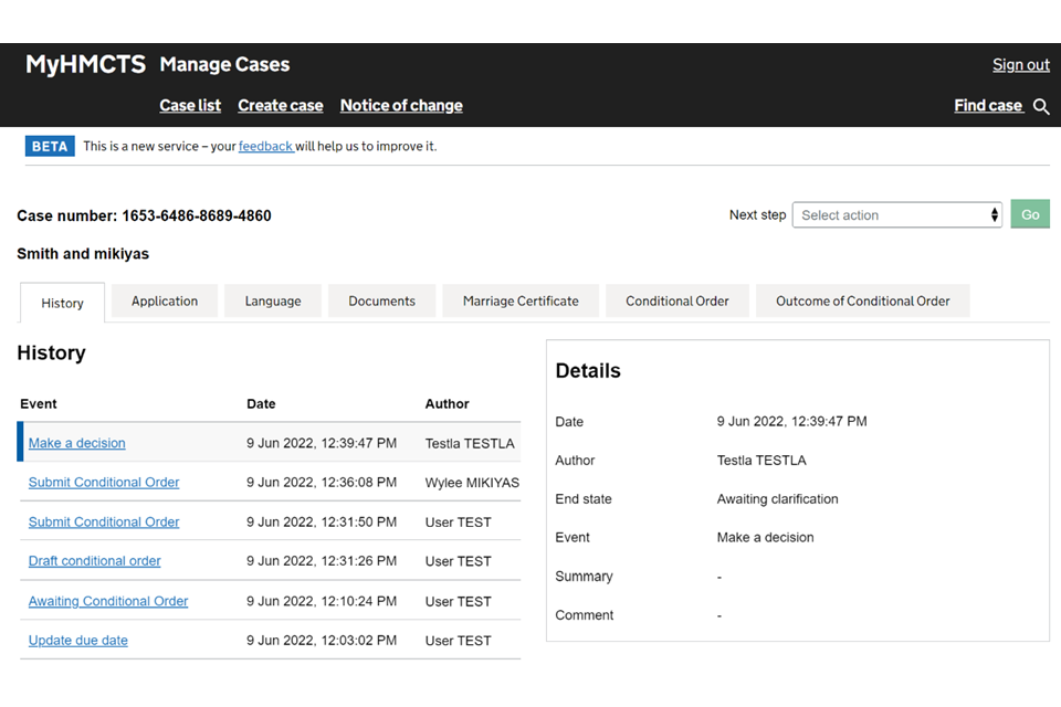 Managing cases and case access in MyHMCTS