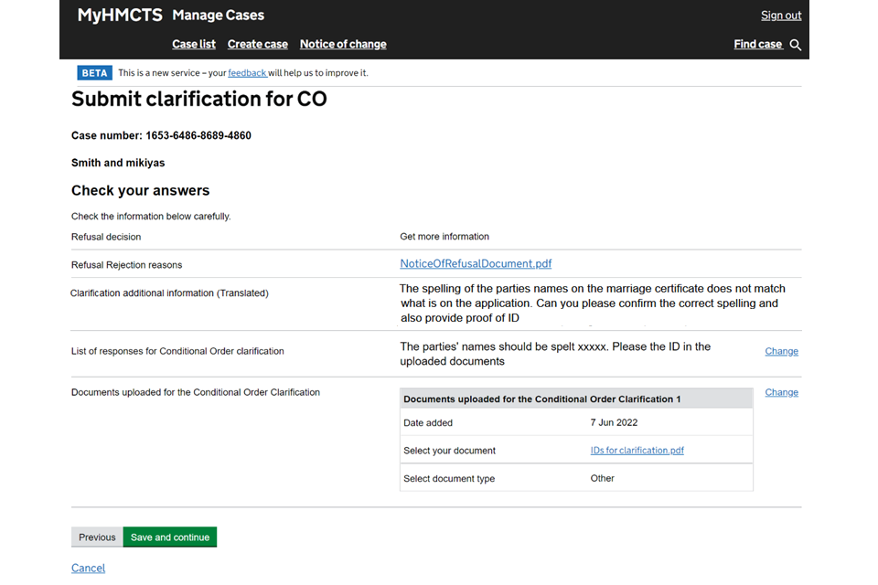 If you need support with case details or with managing a case in MyHMCTS, contact the court and tribunal service centre (CTSC):