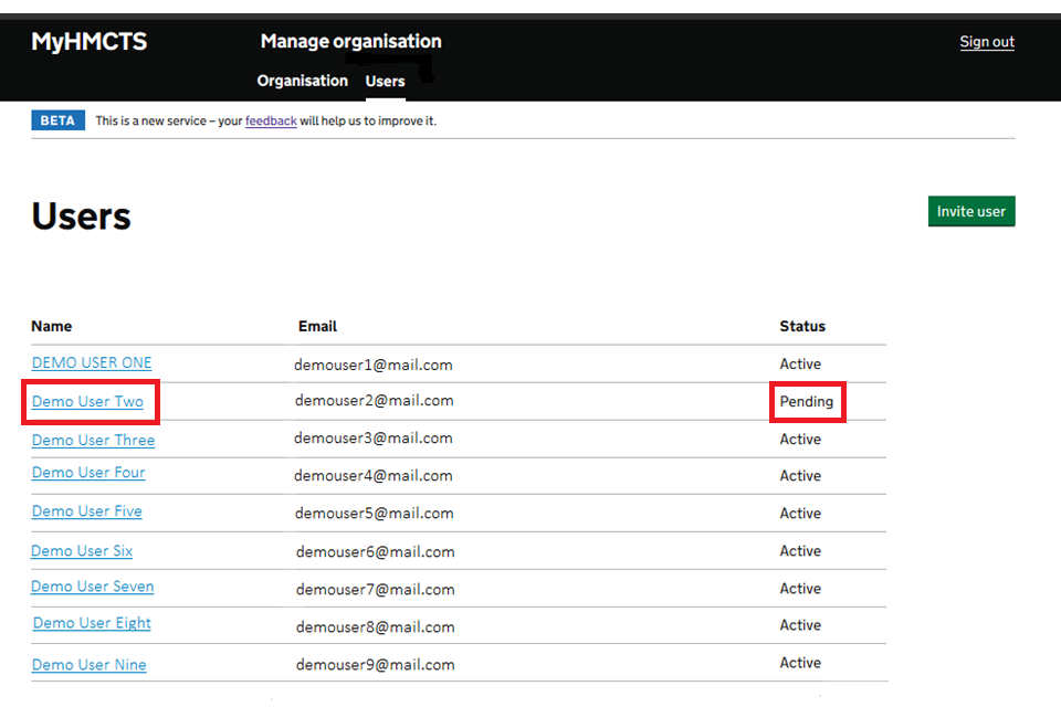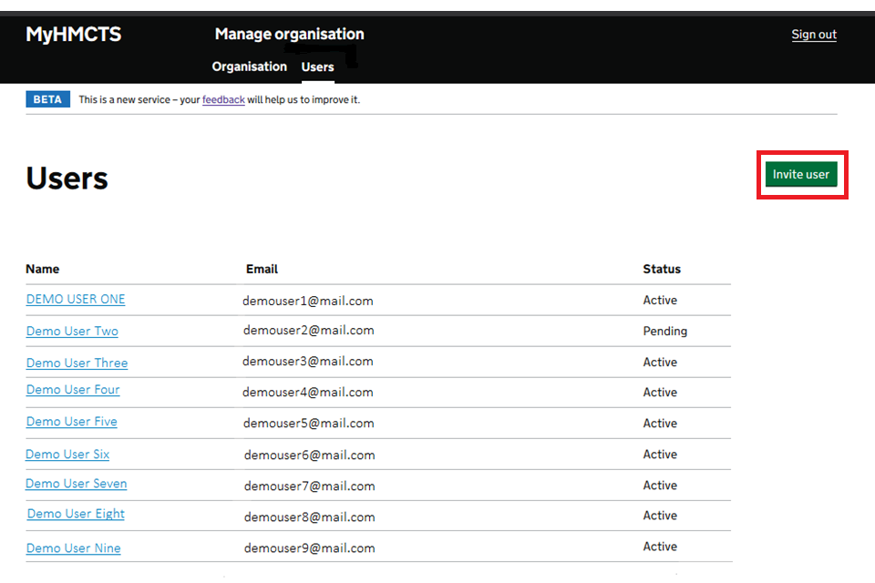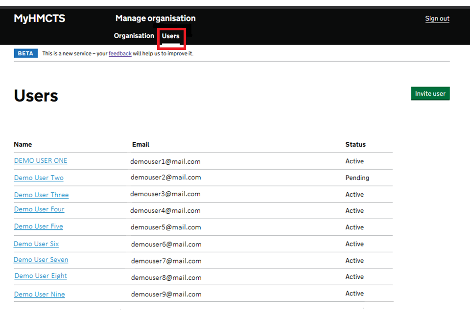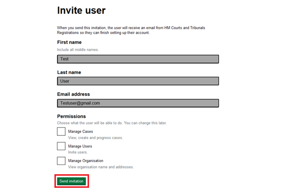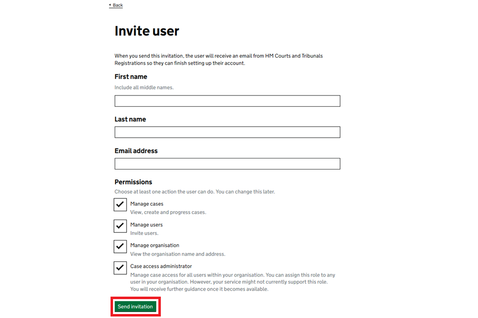 As an account administrator, you are responsible for inviting users to join the organisation’s MyHMCTS account. You can add as many users as you need.