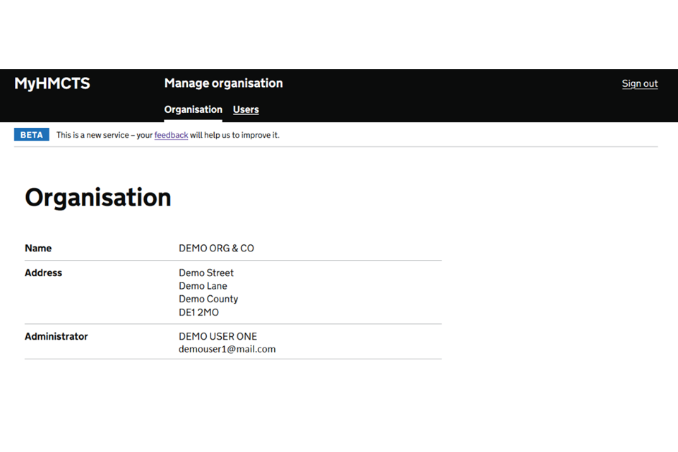 2. If you need to change the organisation details, email MyHMCTSsupport@justice.gov.uk. Please provide the name of your organisation and the change of details.