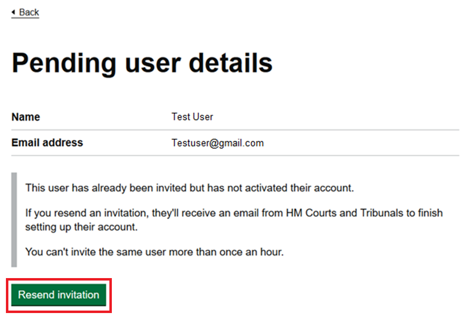 6. You will see a screen showing that the user has not activated their account. Select ‘Resend invitation’.