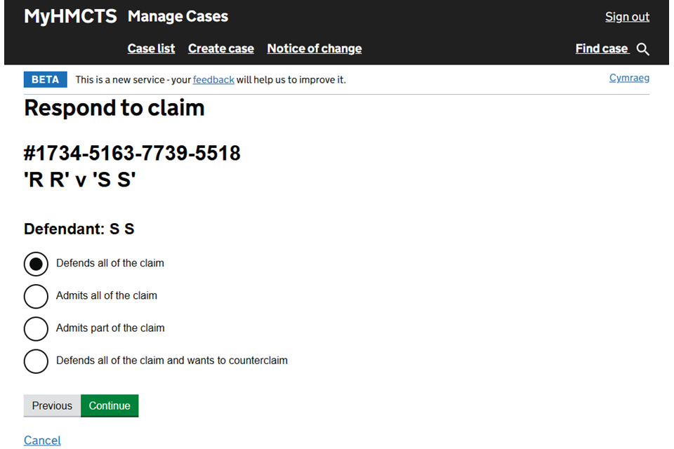 As you have chosen to counterclaim, you will not be able to continue the defence online. However, due to a technical component of the service, you will still need to complete the following screens though to submission.