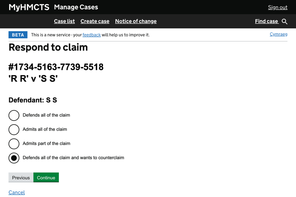 You will see a confirmation that you have chosen to counterclaim. It will give you a claim number and explain that you cannot continue the claim online.
