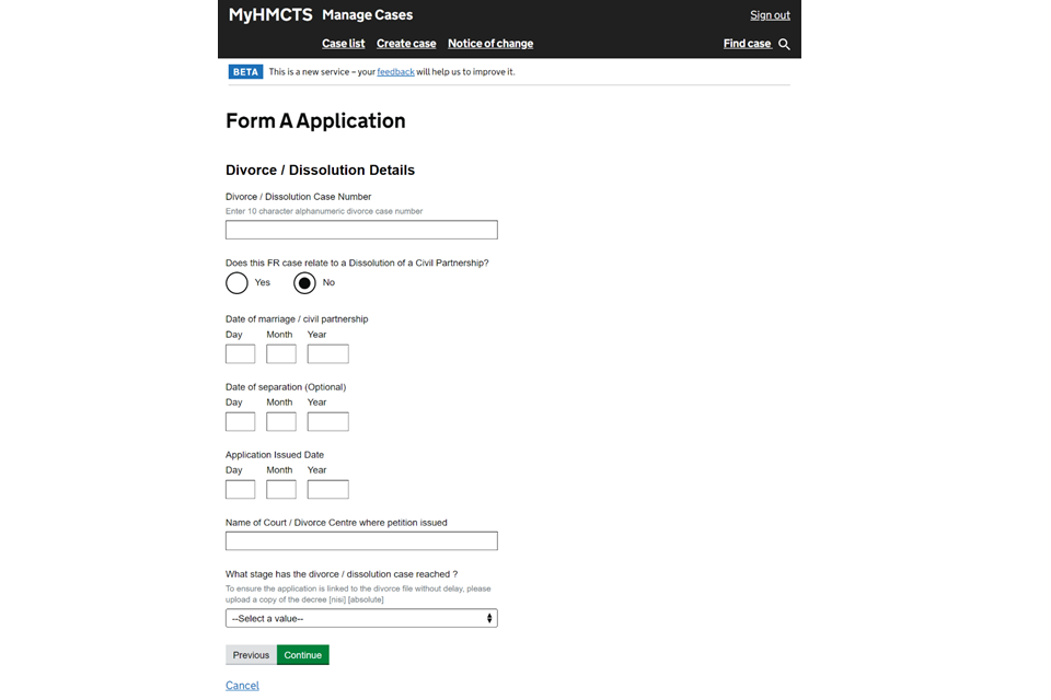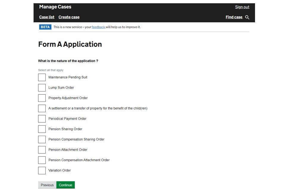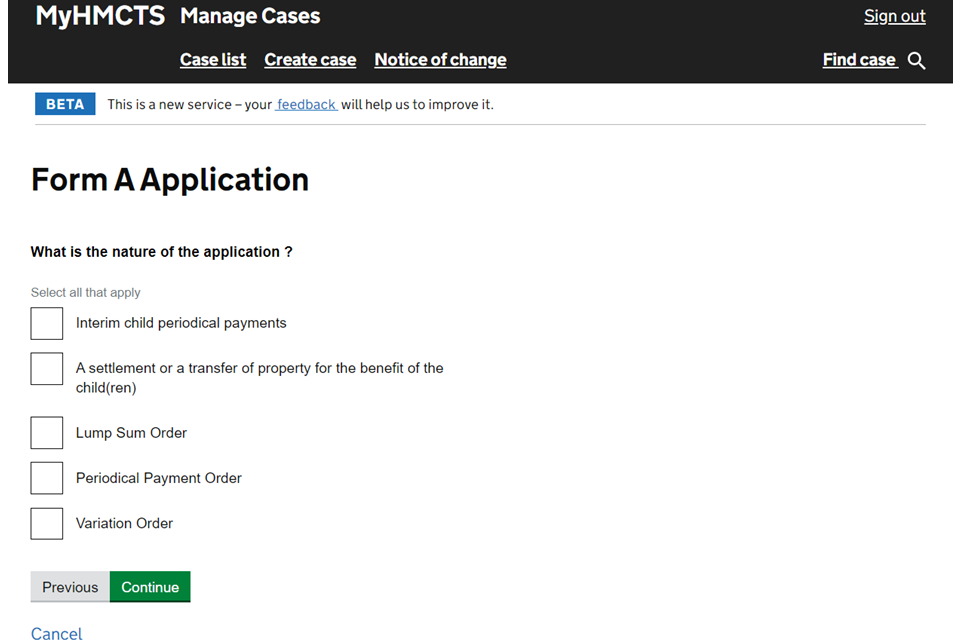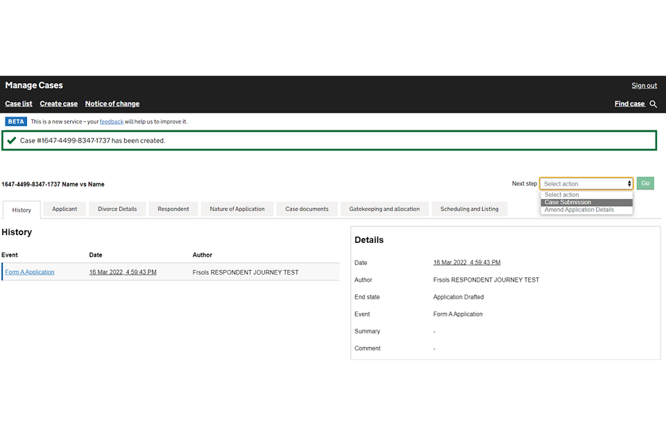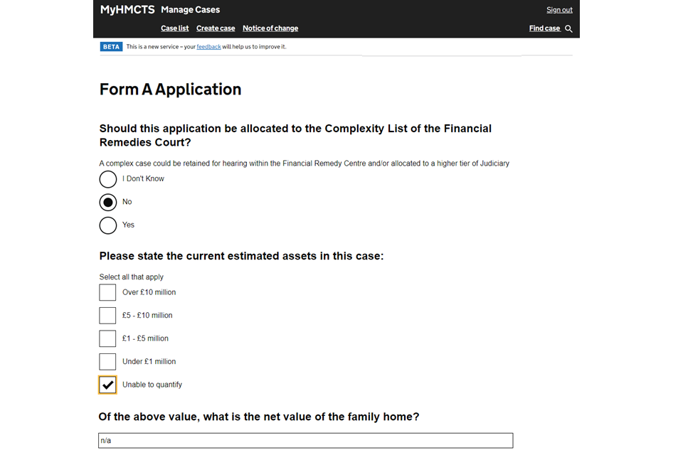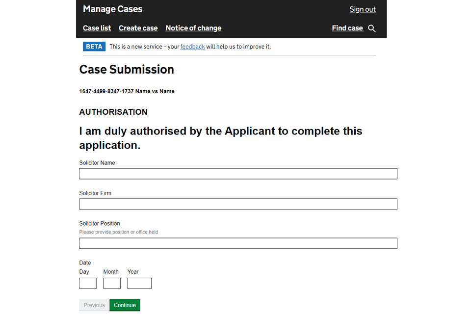 If you’re a solicitor who is not based in the UK and you do not have a PBA account, do not select ‘Case submission’. Instead, you must contact hmctsfinancialremedy@justice.gov.uk to arrange payment.