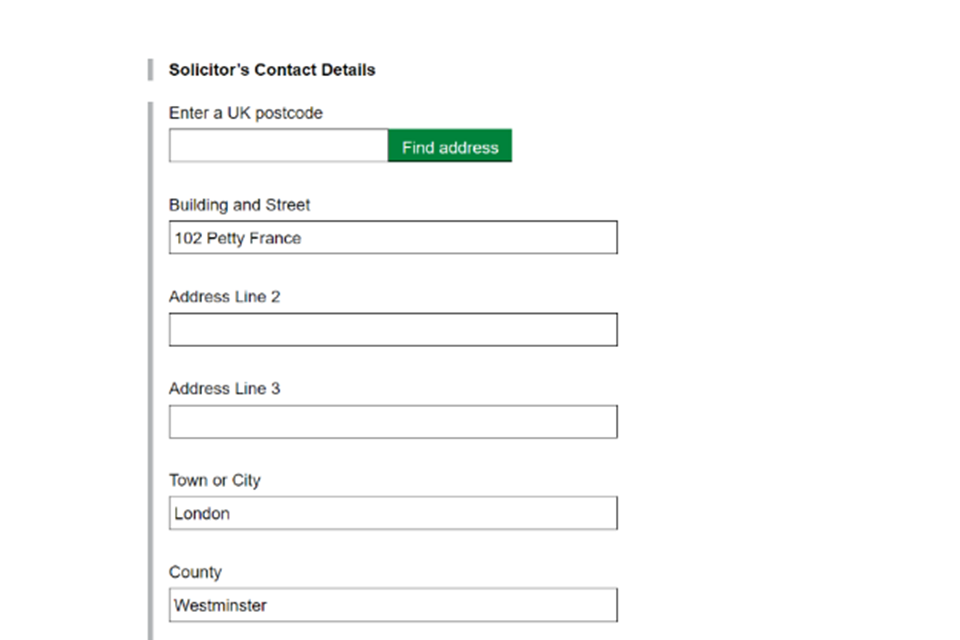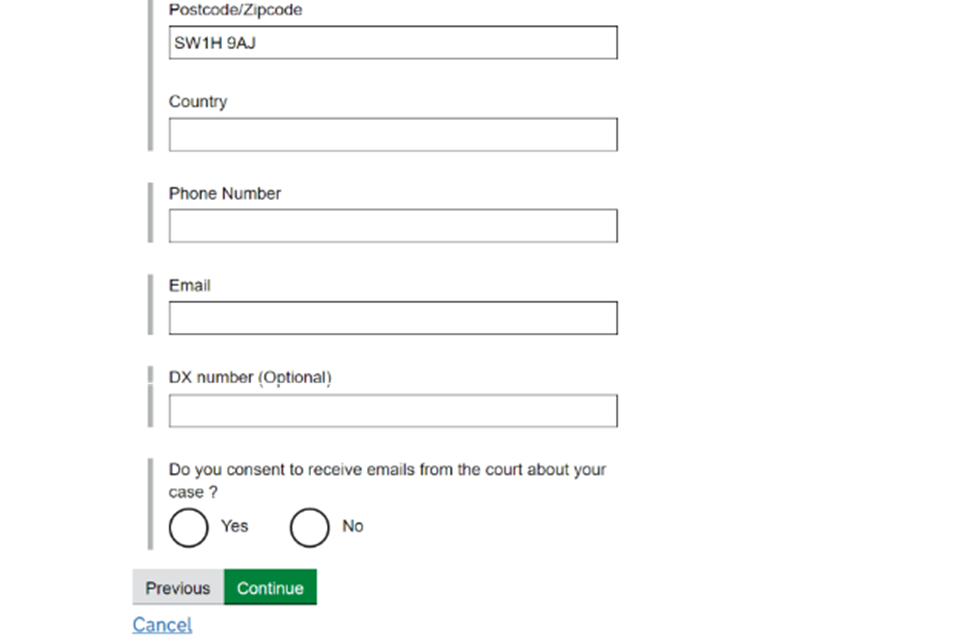If the respondent is in prison, add ‘Rule 39’ before entering the prison address. This makes sure that the correct procedures are followed when sending correspondence to the prison.