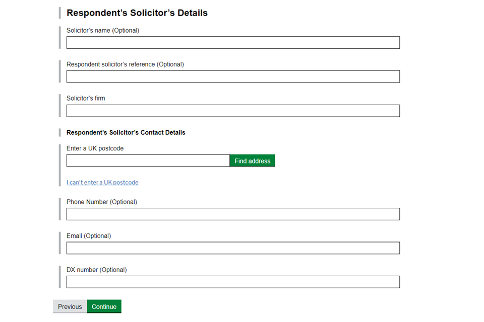 5. Add the respondent’s details, including their solicitor’s details, if they have one.
