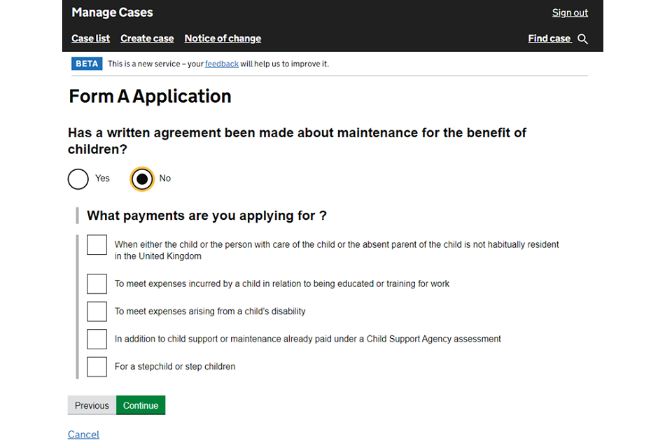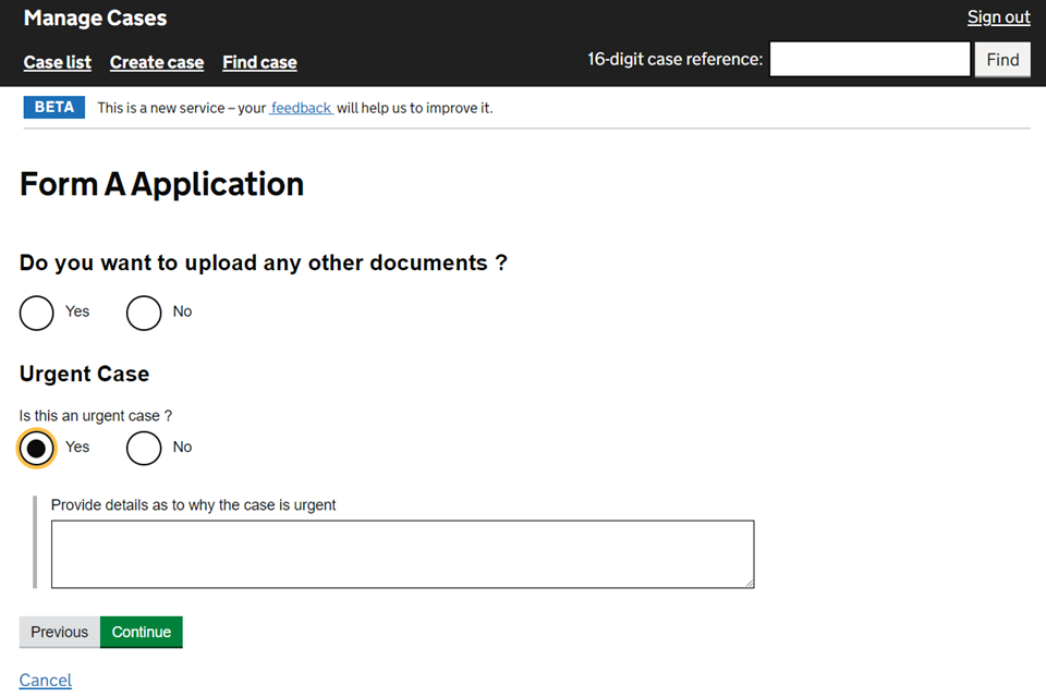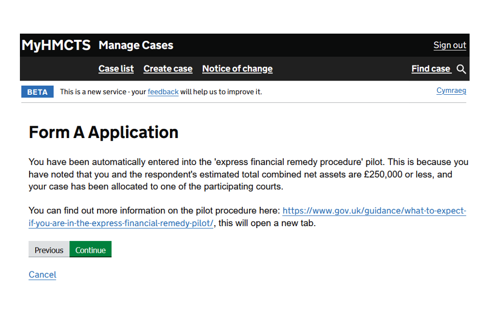 If your case is eligible for the pilot, you will be taken to a page explaining this. There will be a link to guidance explaining more about the pilot and the timelines for pilot cases.