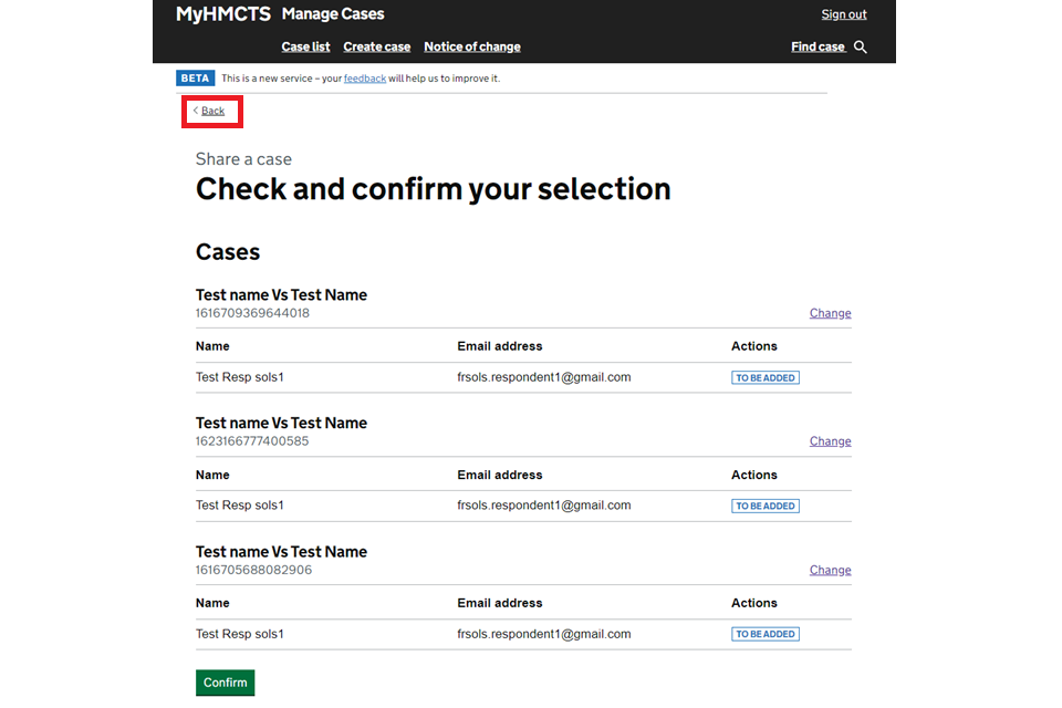 10. Once you have chosen the people you want to share the case with, select ‘Confirm’.