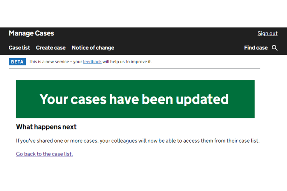 When you sign into MyHMCTS you are presented with the ‘Case List’ where you can: