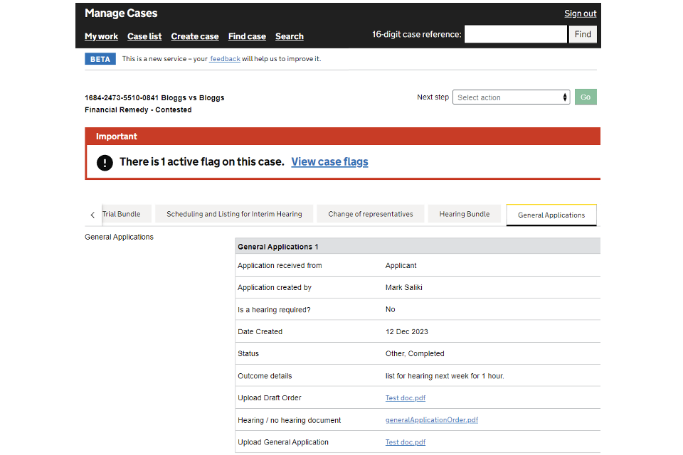 3. Move easily between divorce cases and financial remedy applications using the filters.