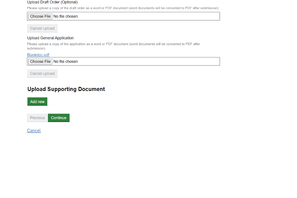 You must upload the application, any draft orders and supporting documents in PDF format.