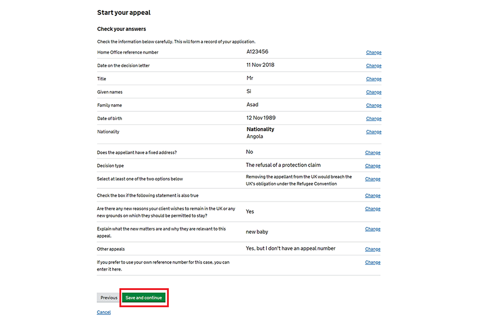Check your previous answers are correct before selecting ‘Save and continue’. This will save your appeal. The appeal is not submitted yet and you can still edit the details you’ve provided by selecting ‘Edit appeal’.