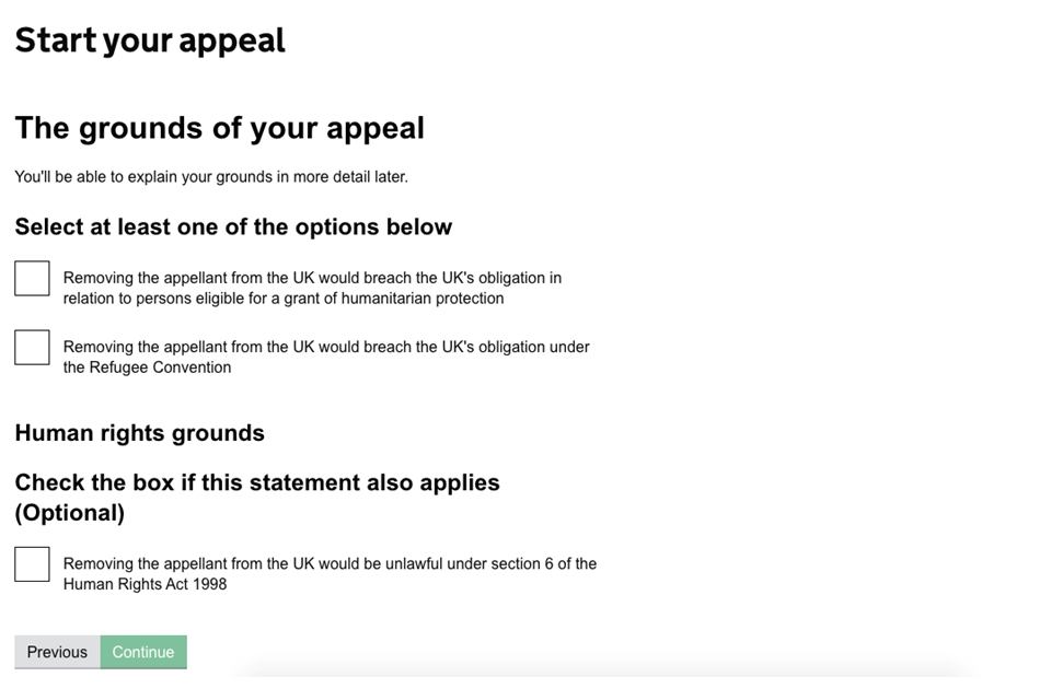 Enter the grounds for your appeal and include any ‘new matters’ that have arisen since the original application; for example, your client may have had a baby in the intervening time. The Home Office must accept any new matters for consideration.