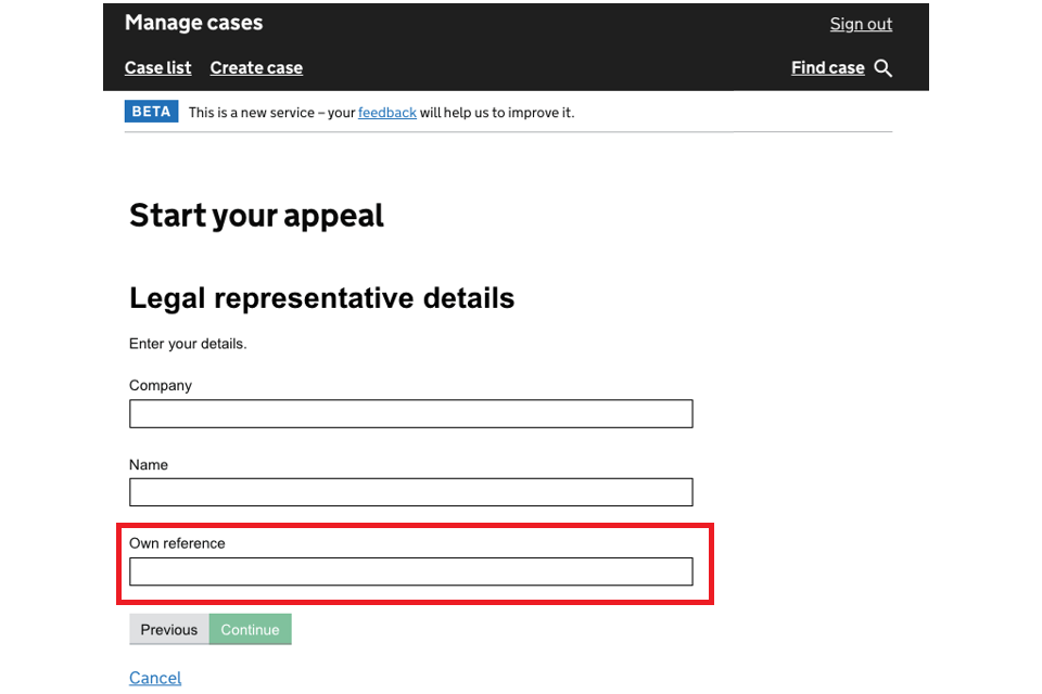 The next screen has the option to enter your own reference number for the appeal. We will use this on any correspondence with your firm.