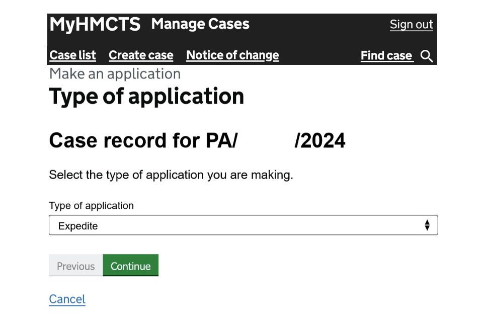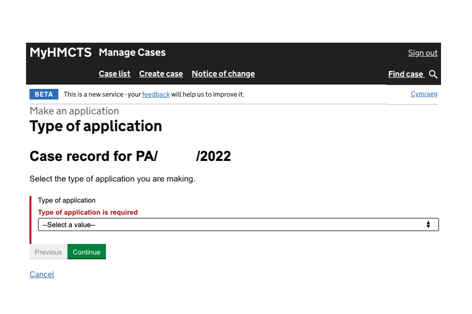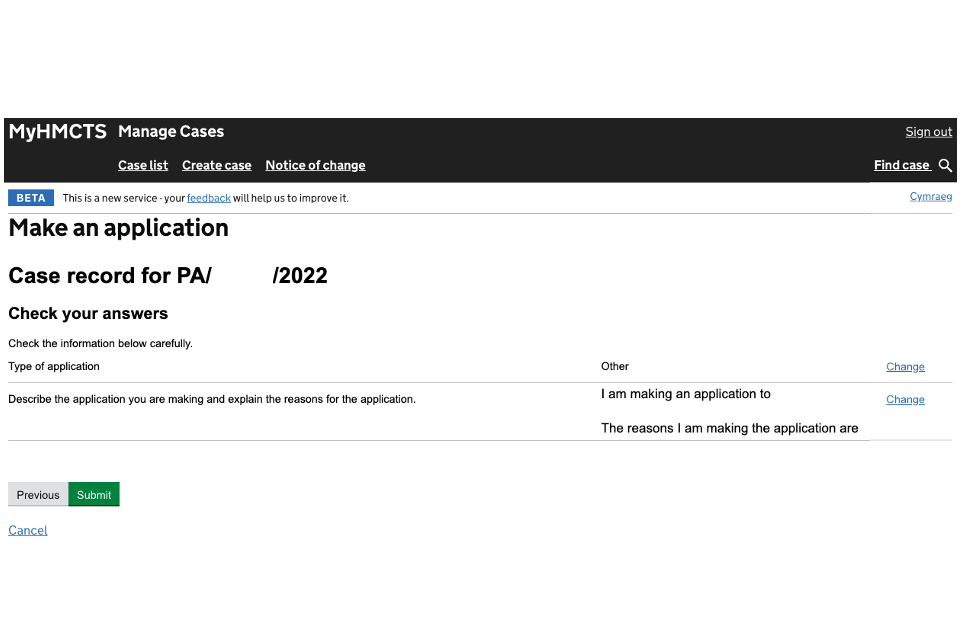 If you are having trouble accessing MyHMCTS, make sure you are using the correct link. To manage a case, you must use https://manage-case.platform.hmcts.net.