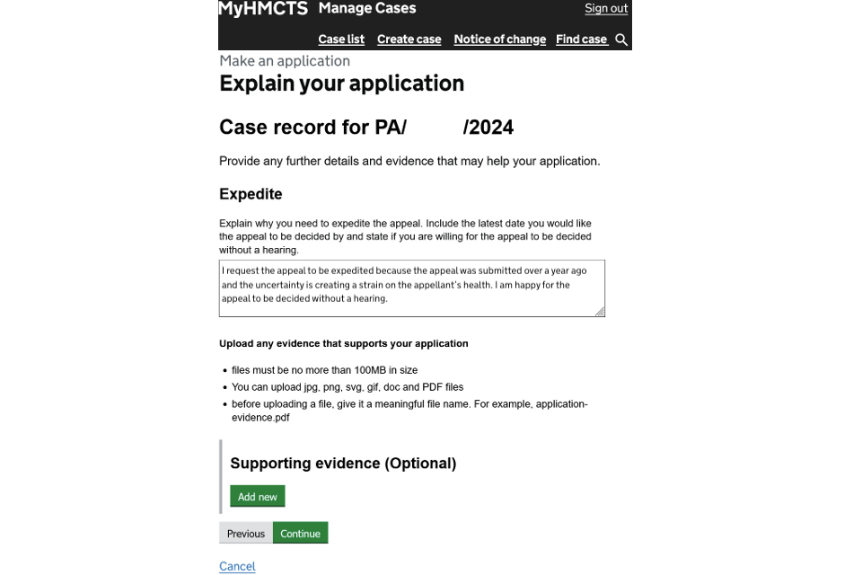 Before your appeal can progress you will need to build your case by writing an ‘appeal skeleton argument’ (ASA) and uploading supporting evidence. We will let you know the deadline for doing this in an email.