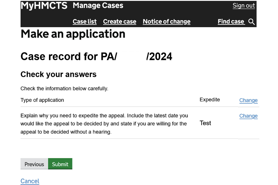 We will share the outcome of the hearing through the MyHMCTS system. You will receive a notification with the decision and you can access the judge’s full decision and reasons in the documents tab.