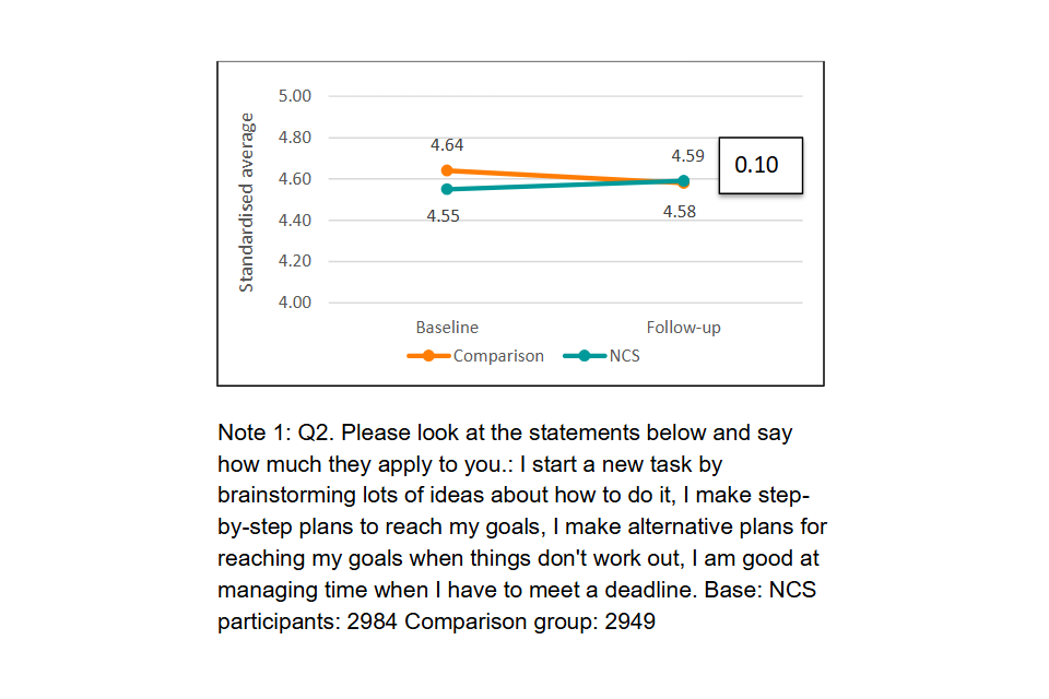 Note 1: Q2. Please look at the statements below and say how much they apply to you: I start a new task by brainstorming lots of ideas about how to do it, I make step-by-step plans to reach my goals, I make alternative plans for reaching my goals when things don’t work out, I am good at managing time when I have to meet a deadline. Base: NCS participants: 2984 Comparison group: 2949