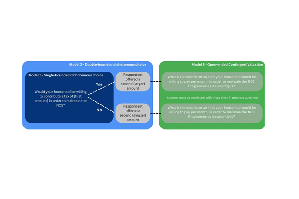 | Economic evaluation (Year 1 residential service line only) | Willingness to pay: What is the average household’s willingness to pay in taxes to support the NCS programme? Does average willingness to pay change across different groups in society? |