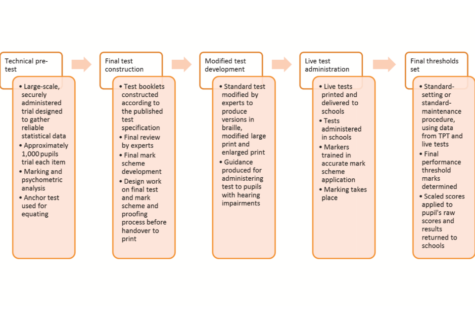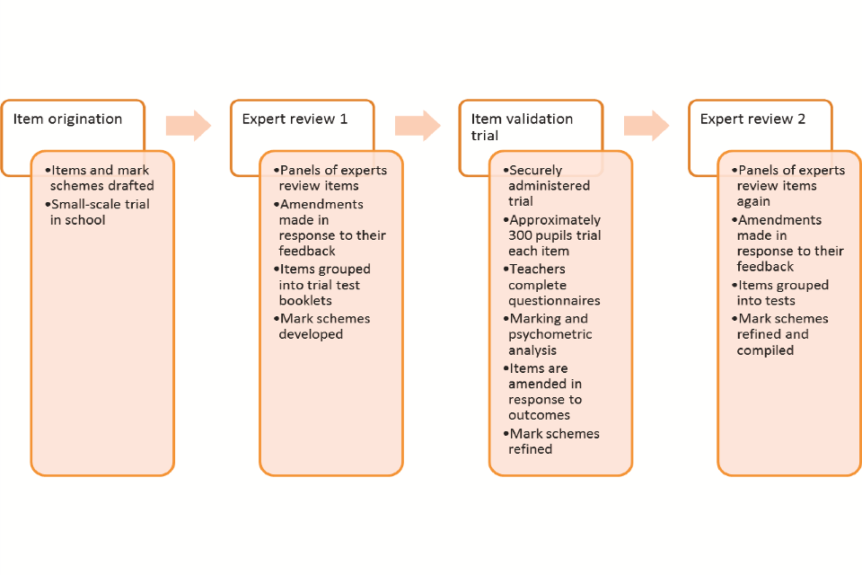 The test development process is based on an item-banking model. Each item is taken through a series of phases to establish whether it is valid, reliable and meets the purposes of the test. Items meeting these criteria are considered for possible inclusion in a live test. Any suitable items not used in a live test are kept in the item bank for potential use in future live tests. Live tests must meet the test specification in the test framework for each subject.