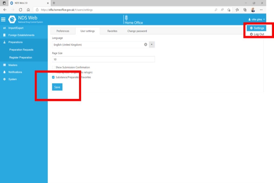 Log into NDSWeb and select ‘Settings’ at the top right of the screen. If you navigate across to ‘User Settings’. You will see an option to enable Substance/Preparation Favourites. Select this and click ‘Save’.