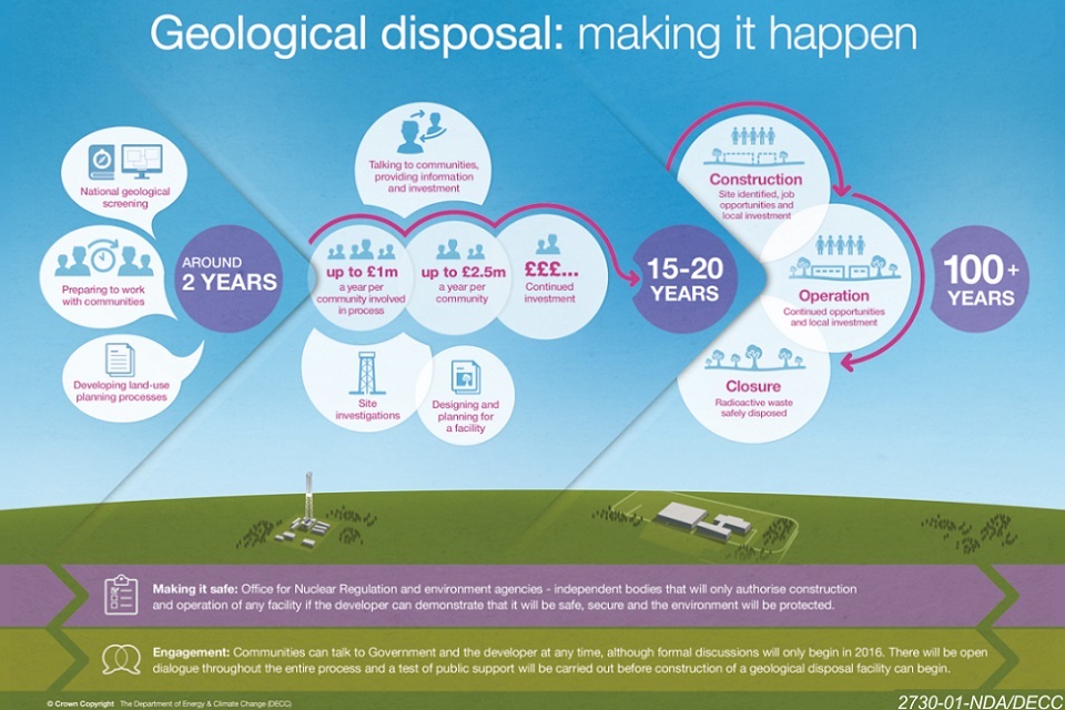 2.5 There is a large range of potentially suitable geological environments for geological disposal the UK. To identify potential sites where a GDF could be located, the UK Government favours an approach based on working with communities that are willing to participate in the siting process.