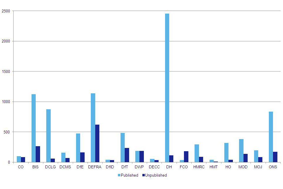 Over the summer, the Cabinet Office has been working with departments and their ALBs to start to develop, for the first time, an inventory of government datasets. This first tranche of work looked at the datasets which are currently available on data.gov.uk and at those underlying, raw datasets which are held and owned by government but not currently published. Over 3,900 unpublished datasets have been listed on the site so far.