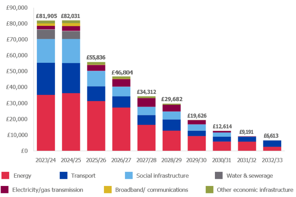 Chart 1: Profile of planned pipeline investment by sector (£m) 2023/24 to 2032/33[footnote 9]