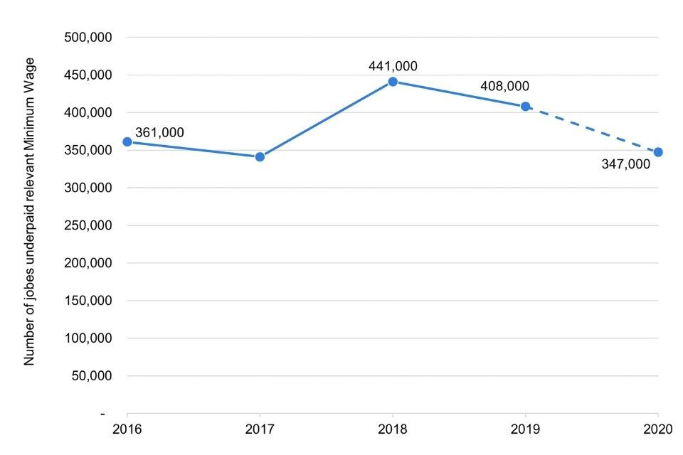 Figure 4 shows our estimates of minimum wage underpayment from 2016 to 2020, based upon ASHE.