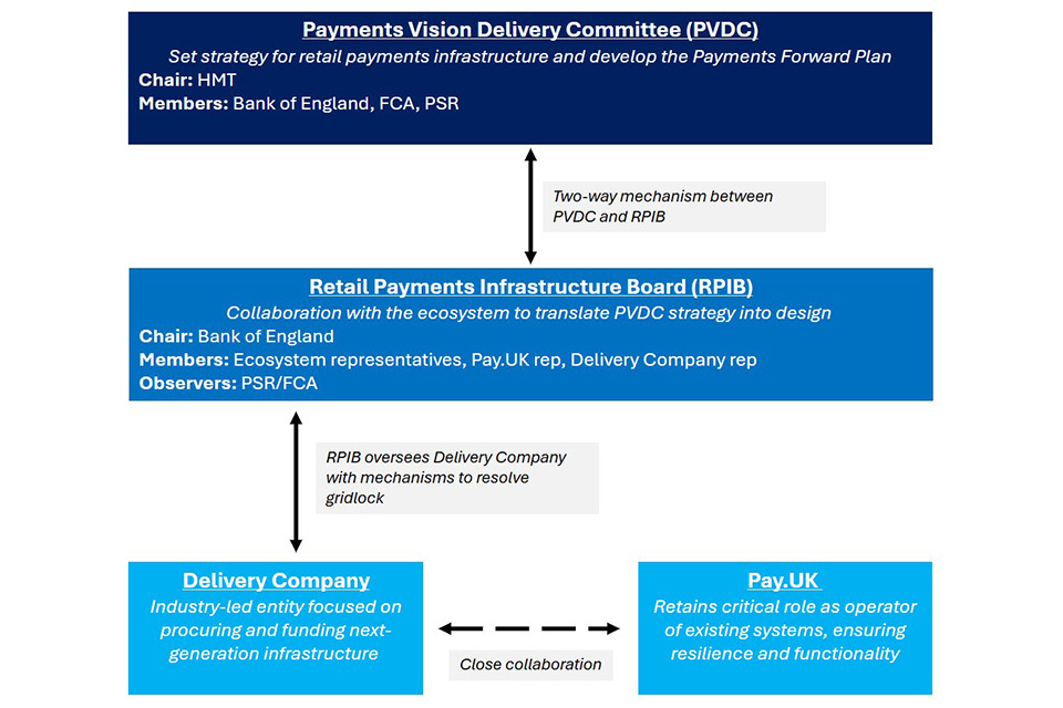 As Chair of the Retail Payments Infrastructure Board, the Bank of England will now work with ecosystem participants to establish these new structures, including supporting the setting up of the new industry-led Delivery Company.