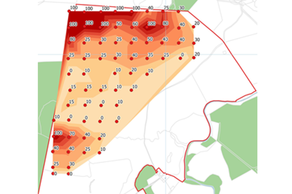 - a clear map of the final survey extent and its area in km2 must be provided on a large scale OS base and air photo