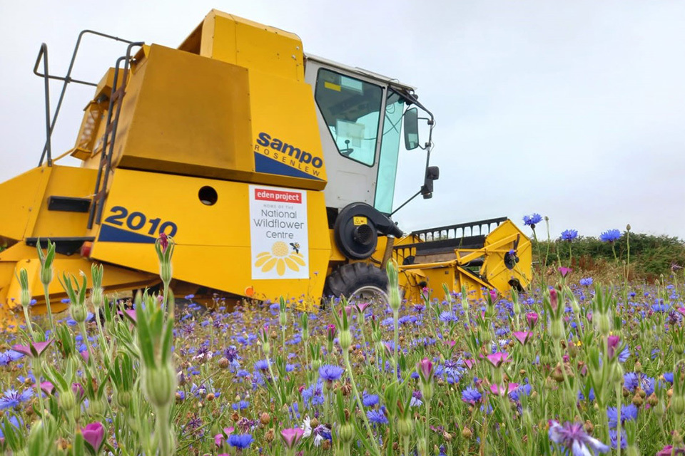 Combine harvester collecting wildflower seeds, courtesy of the Eden Project.