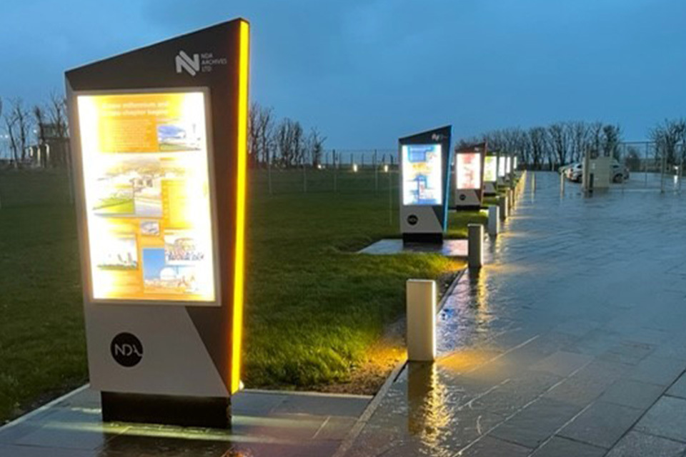 Each panel describes the events of a particular decade, selected and compiled by representatives from across the NDA group. Feedback from visitors to Nucleus has been very positive with comments such as ‘the panels make Nucleus feel more like a heritage destination’, and ‘the new monoliths make the walkway very interesting, and the lights look amazing in the dark’.