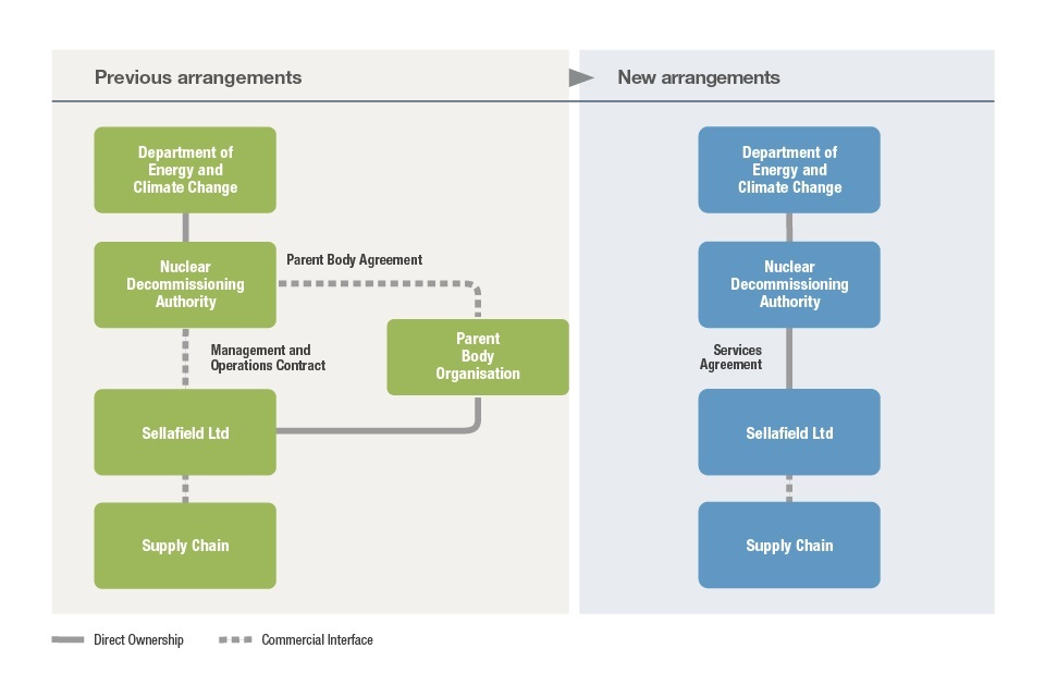 | Private sector ownership of Sellafield Ltd | Sellafield Ltd a subsidiary of the NDA |