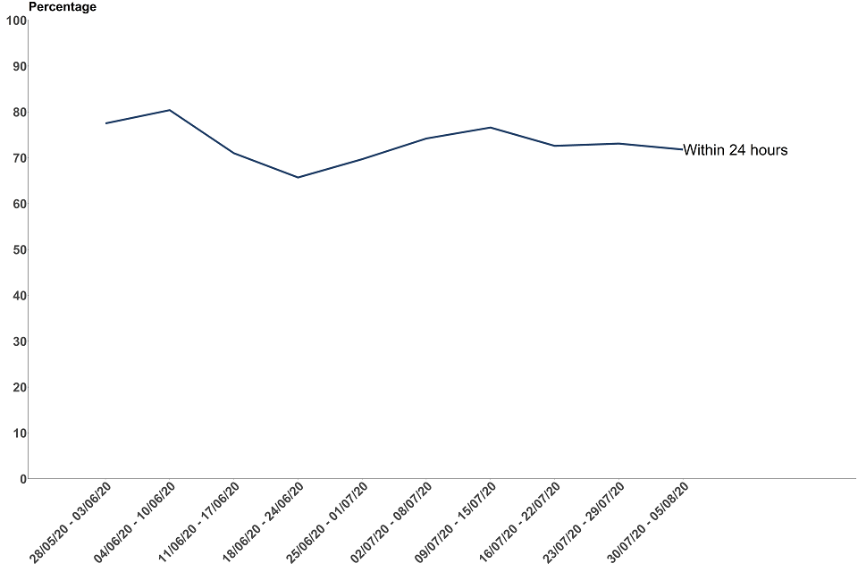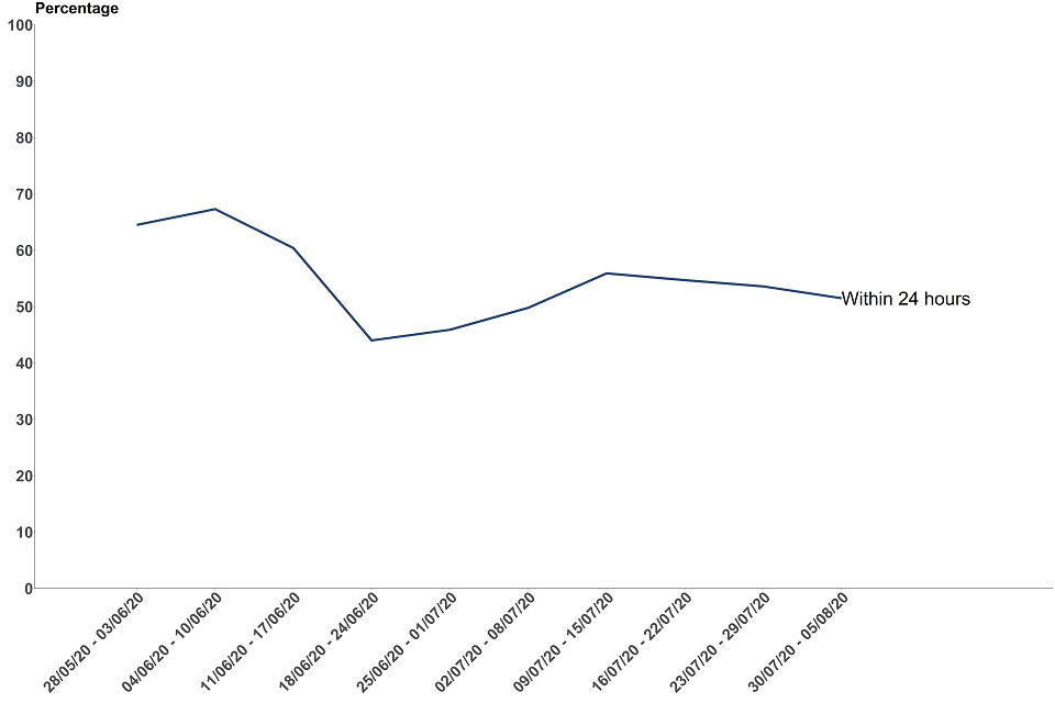 9 out of 10 pillar 1 test results were made available within 24 hours of the laboratory receiving the test. This proportion has remained similar since reporting began from 9 July