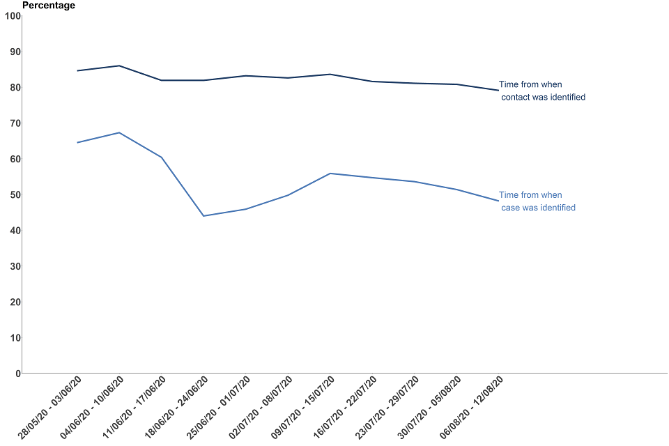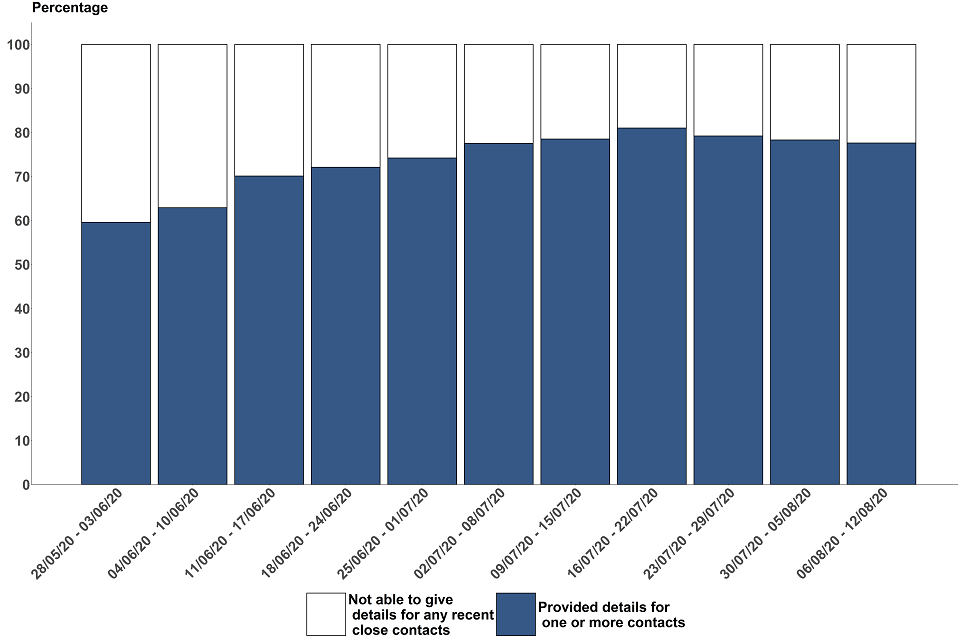 Between 6 August and 12 August, 4 in every 5 people transferred to the contact-tracing system were reached and asked to provide information about their contacts