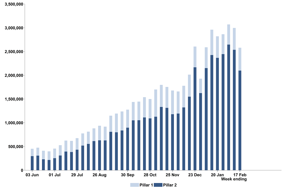 Between 11 February and 17 February 2021, 96.7% of pillar 1 test results were made available within 24 hours. Turnaround times for pillar 1 have been consistently around 95% for the last 6 weeks and since reporting began88.0% of test results have been made available within 24 hours.
