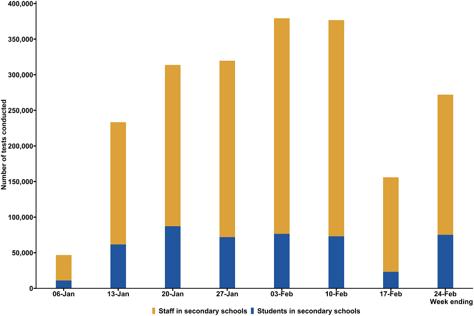 LFD tests conducted by staff and students in secondary schools[footnote 4]