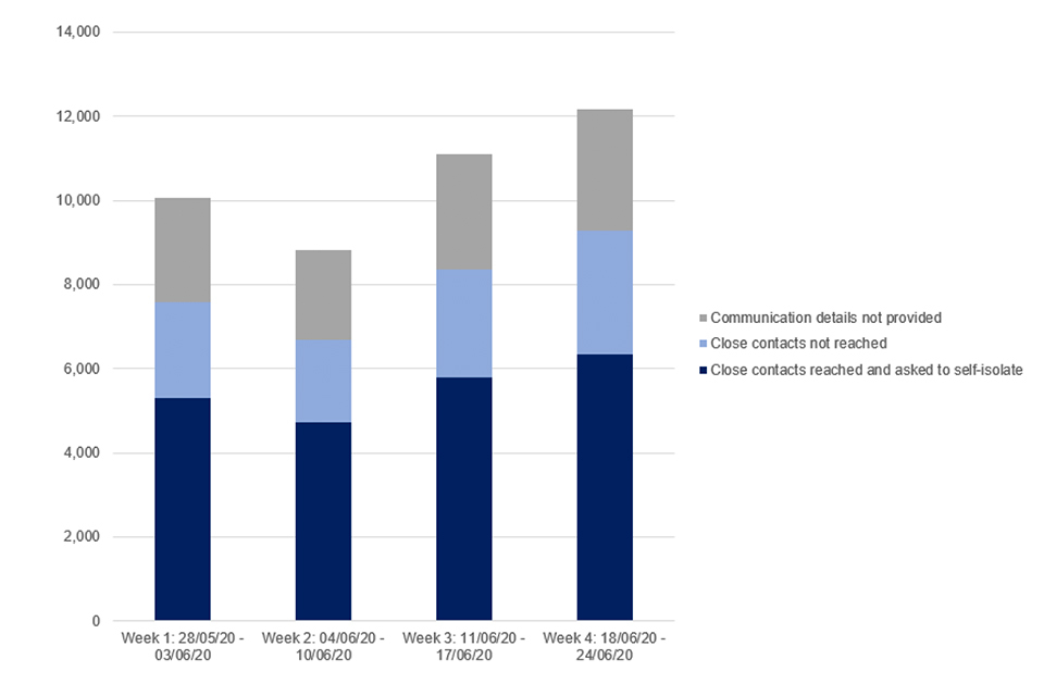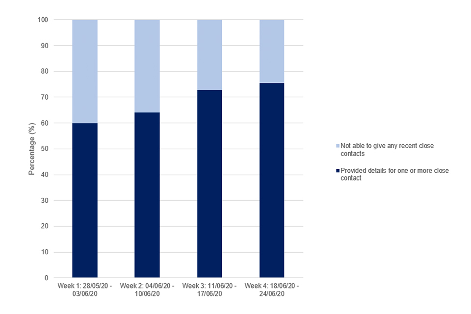 Between 18 June and 24 June, three-quarters of people who were reached and asked to provide information about their contacts provided one or more close contacts