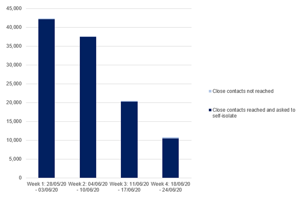 The data in the tables below reflect the first 4 weeks of operation of the contact tracing element of NHS Test and Trace.