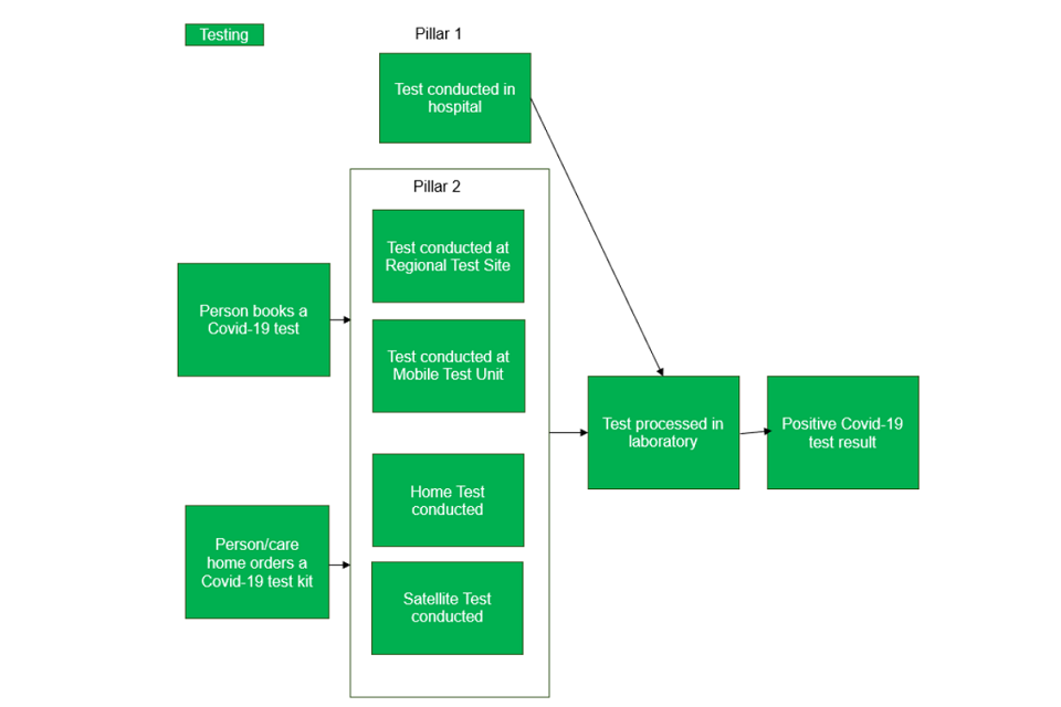 Pillar 1 testing is conducted in hospitals and PHE laboratories, while pillar 2 testing can be carried out through several different routes: