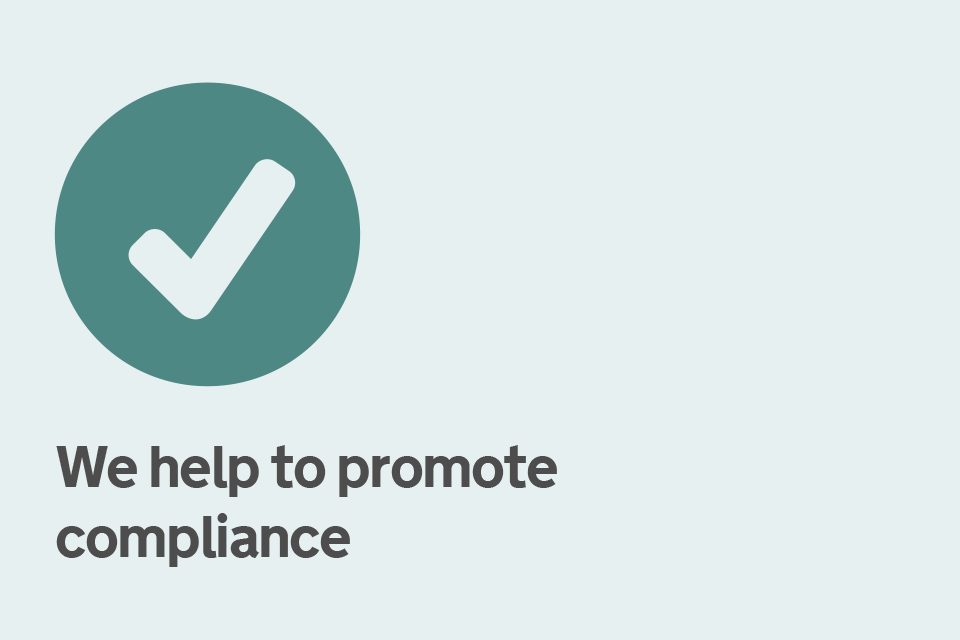 This graphic shows a tick and the caption: we help to promote compliance.