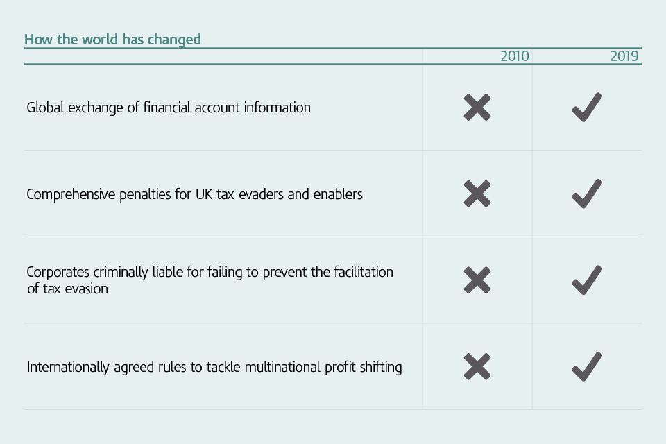 The UK has seen huge changes and improvements to offshore tax compliance in recent years. Since 2010, the government has introduced over 100 new measures to tackle tax non-compliance.