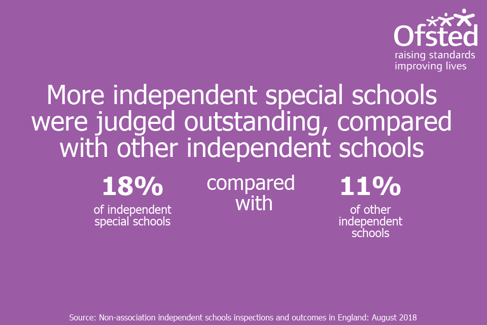 Infographic stating 'More independent special schools were judged outstanding, compared with other independent schools'.
