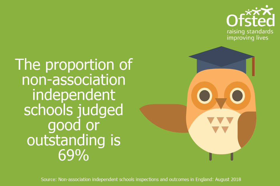 Infographic stating 'The proportion of non-association independent schools judged good or outstanding is 69%'.