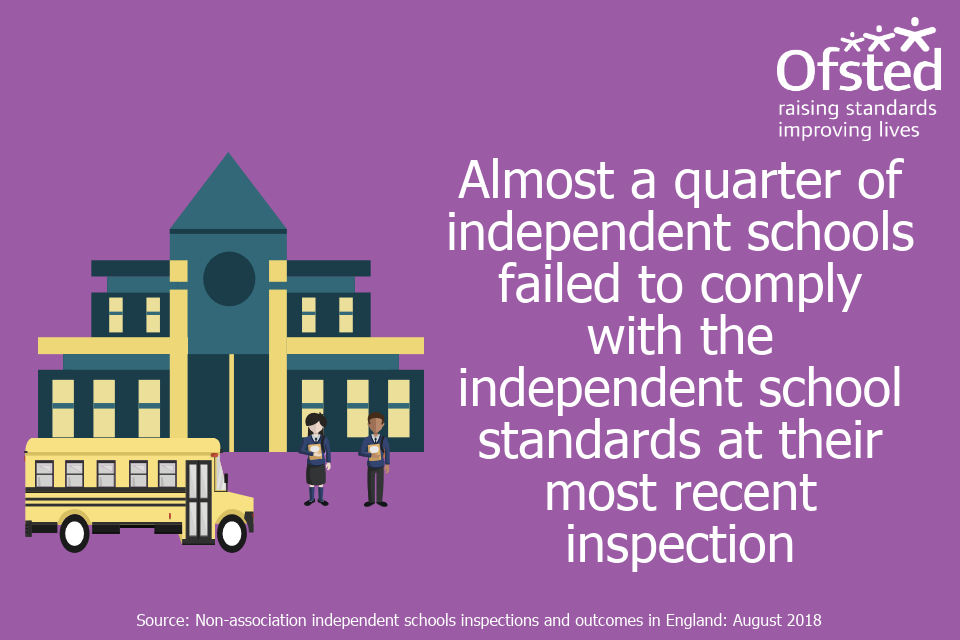 Infographic stating 'Almost a quarter of schools failed to comply with the independent school standards at their most recent inspection'.