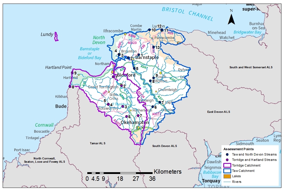The North Devon area covers approximately 2,362km2 in south west England (Map 1). It is divided into 2 catchments: